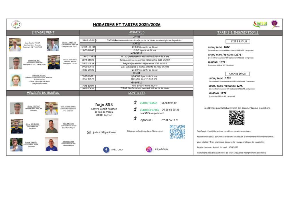 Club de Judo du SRB Responsable : Olivier PORTRAT Téléphone : 06 78 49 24 49Email : judo.srb@gmail.com